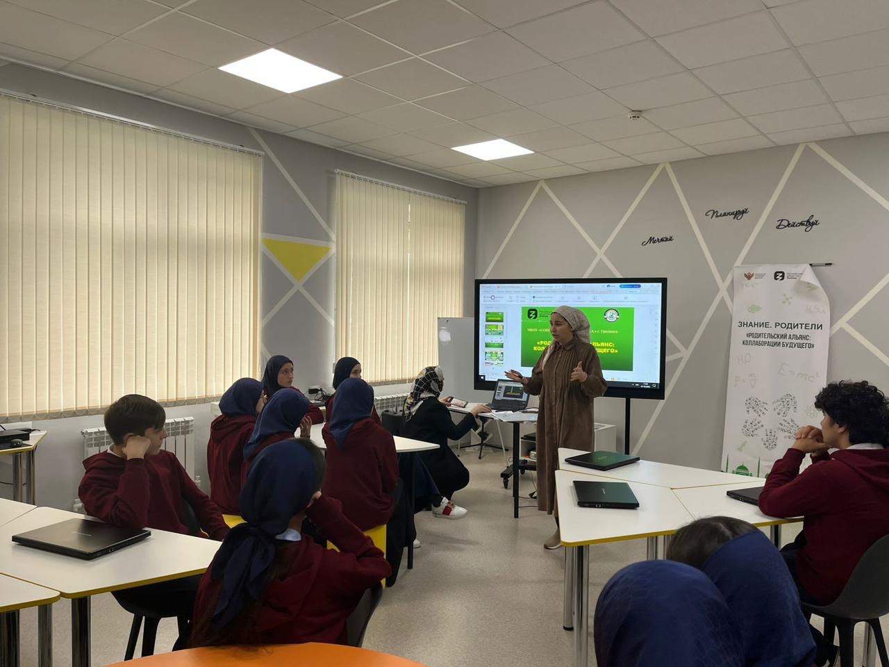 Школа наша открыта 1 сентября 2022г. и горда носит имя Первого Президента Чеченской Республики, Героя России Ахмата Абдулхамидовича Кадырова.