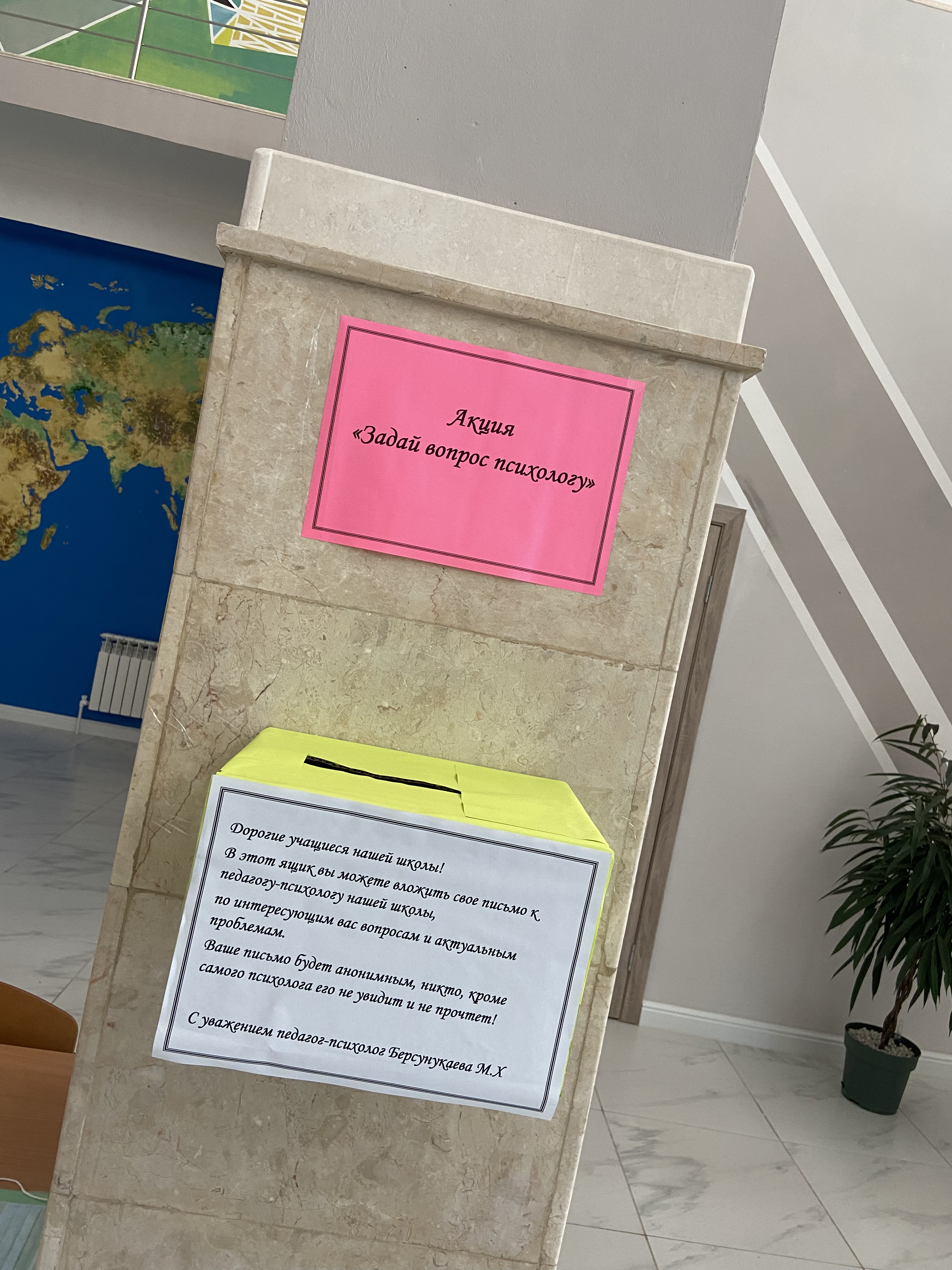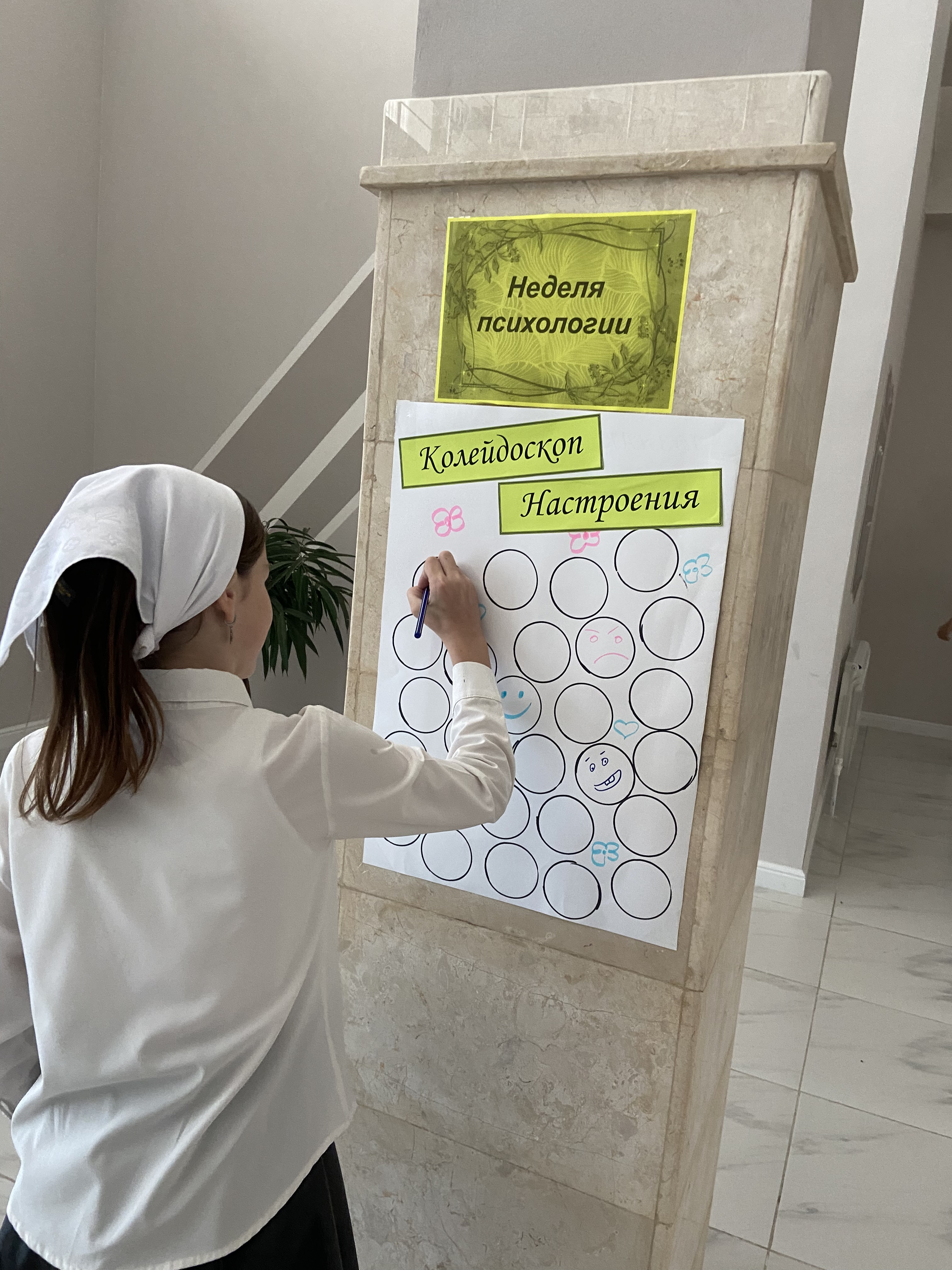 21.04.2023В рамках Недели психологии, в МБОУ «Гелдаганская СШ им. Первого Президента ЧР, Героя России А.А. Кадырова», прошли акции «Задай вопрос психологу», «Пожелай учителю» и «Калейдоскоп настроения» . В холле школы был размещен почтовый ящик, куда ребята могли отправить свои письма, написанные школьному психологу. Участия приняли все учащиеся образовательного учреждения.Учащиеся школы писали на плакате пожеланий благодарственные слова учителям. На акции «Калейдоскоп настроения» ребята выражали свои эмоции на день.Педагог-психолог Берсунукаева Марьям рассказала, что акции вызвали большую заинтересованность у учащихся и педагогов. Видно было, что все учащиеся с увлеченностью участвовали на всех акциях.Неделя психологии в нашей школе закончилась. Проводимые акции и конкурсы создали в школе позитивный настрой. На некоторое время школа стала одним целом, вжилась в одни мысли, одни вопросы. Нам кажется, мы смогли возбудить живой, естественный интерес к себе и своему психологическому знанию и педагогов, и детей. Очень многие за этот промежуток времени подумали о себе и других, о том, как проявляется их настроение и как влияет на окружающих поделилась с нами зам.директора по ВР Берсунукаева Макка Хусбаудыевнв.