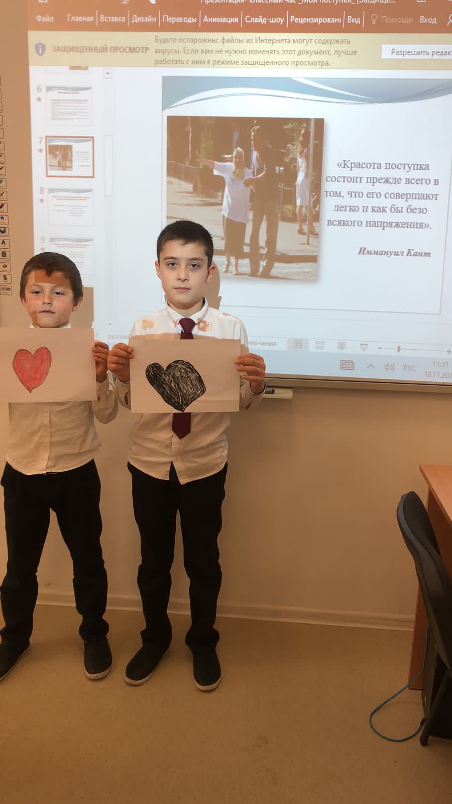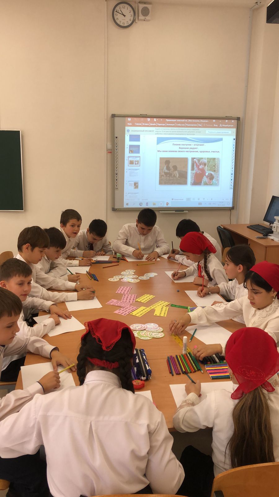 18.11.2022В рамках реализации национального проекта «Образование»федерального проекта «Успех каждого ребенка» в МБОУ “Гелдаганская СШ им. Первого Президента ЧР, Героя России А.А. Кадырова» прошел тренинг «Мы и наши поступки». Организатор: Сангириева Малика Бадрудиновна.Цель: научить детей коммуникативным навыкам общения, развить навыки позитивного общения, умение избегать конфликтов, принять правила общения, раскрыть значение общения в жизни человека.Занятие началось с приветствия, Ребята свободно передвигаясь по комнате, подходили друг к другу и обменивались комплиментами, т.е. подчеркивали то, что ценят больше всего именно в этом человеке.Дальше учащиеся вместе с учителем говорили о воспитанности человека и разбирали мотивы поведения. Также учащиеся 4 класса сыграли в игру «Благодарность без слов»Дети разбиваются на пары. Сначала один, а потом другой пытаются без помощи слов выразить чувство благодарности. Затем партнёры делились впечатлениями о том:- что почувствовали, выполняя это упражнение;- искренно или наиграно выглядело изображение благодарности партнёром. На конец урока учащиеся прошли тест «Закончи предложения»Мне хорошо, когда…Мне грустно, когда…Я чувствую себя глупо, когда…Я сержусь, когда…Я чувствую себя неуверенно, когда…Я боюсь, когда…Я чувствую себя смело, когда…Я горжусь собой, когда… Сегодня на тренинге я узнал что такое доброта, кто такой добрый человек, каким бывает добрый поступок, рассказал нам ученик 4а класса Идрисов Хамзат. Доброта -это самое ценное, что может быть в человеке. Такая доброта выбирает себе хозяина – человека с чувством обострённого достоинства, который защитит слабого, поможет в беде, по-настоящему почувствует несправедливость, унижение одного человека другим и способен бороться со злом прокомментировала учитель начальных классов Сангириева Малика Бадрудиевна.