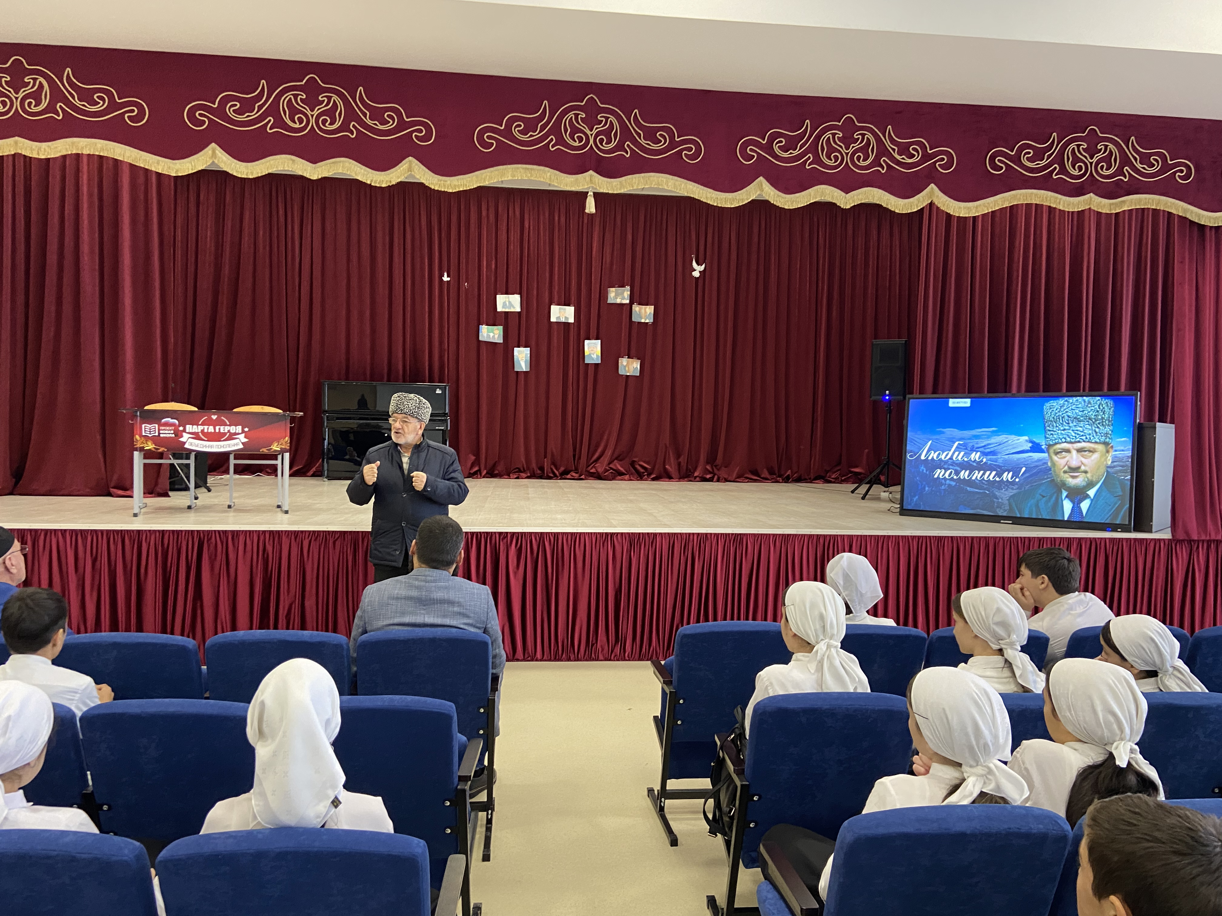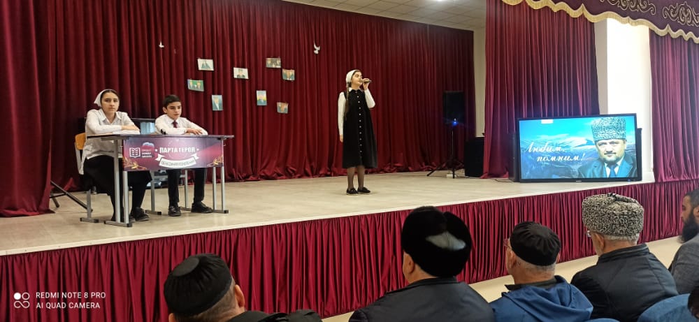08.12.2022В рамках реализации проекта «Парта героя» в МБОУ “Гелдаганская СШ им. Первого Президента ЧР, Героя России А.А. Кадырова» прошло торжественное мероприятие открытию «Парта героя». Цель проекта – создание условий для формирования у детей и подростков уважительного отношения к истории Отечества, героическому прошлому и настоящему нашей страны. Почётное право сидеть за Партой Героя получили ученик 7а класса Асхабов Муслим и ученица 7в класса Юсупова Танзила. Такое право присудили учащимся за отличные оценки, а также за активную общественную работу по итогам четверти. Наша школа названа именем Первого Президента ЧР, Героя России А.А. Кадырова. Парту мы решили открыть в честь Ахмата - Хаджи Кадырова . В трагические моменты народной судьбы он закрыл своей грудью дыру, образовавшуюся в историческом времени. Благодаря ему восторжествовал мир. Ахмат - Хаджи Кадыров – Герой в классическом, высшем смысле. Герой — это тот, кто совершает подвиг, зная, что этот подвиг может кончиться смертью. Тот является истинным героем, кто на пути к победе встречается лицом к лицу со смертью. Не отступает, не содрогается, а с полным сознанием неизбежности движется ей навстречу рассказал гость зам.представителя РЕССОВЕТА в Курчалоевском районе,член Консультативного Совета Главы ЧР Магамадов Салам Алиевич. Напомним, что «Парта Героя» – ученическая парта с размещенной на ней информацией о заслуженном человеке, герое, имеющем непосредственное отношение к школе или к городу, его фотографией, биографией, героическим путем.