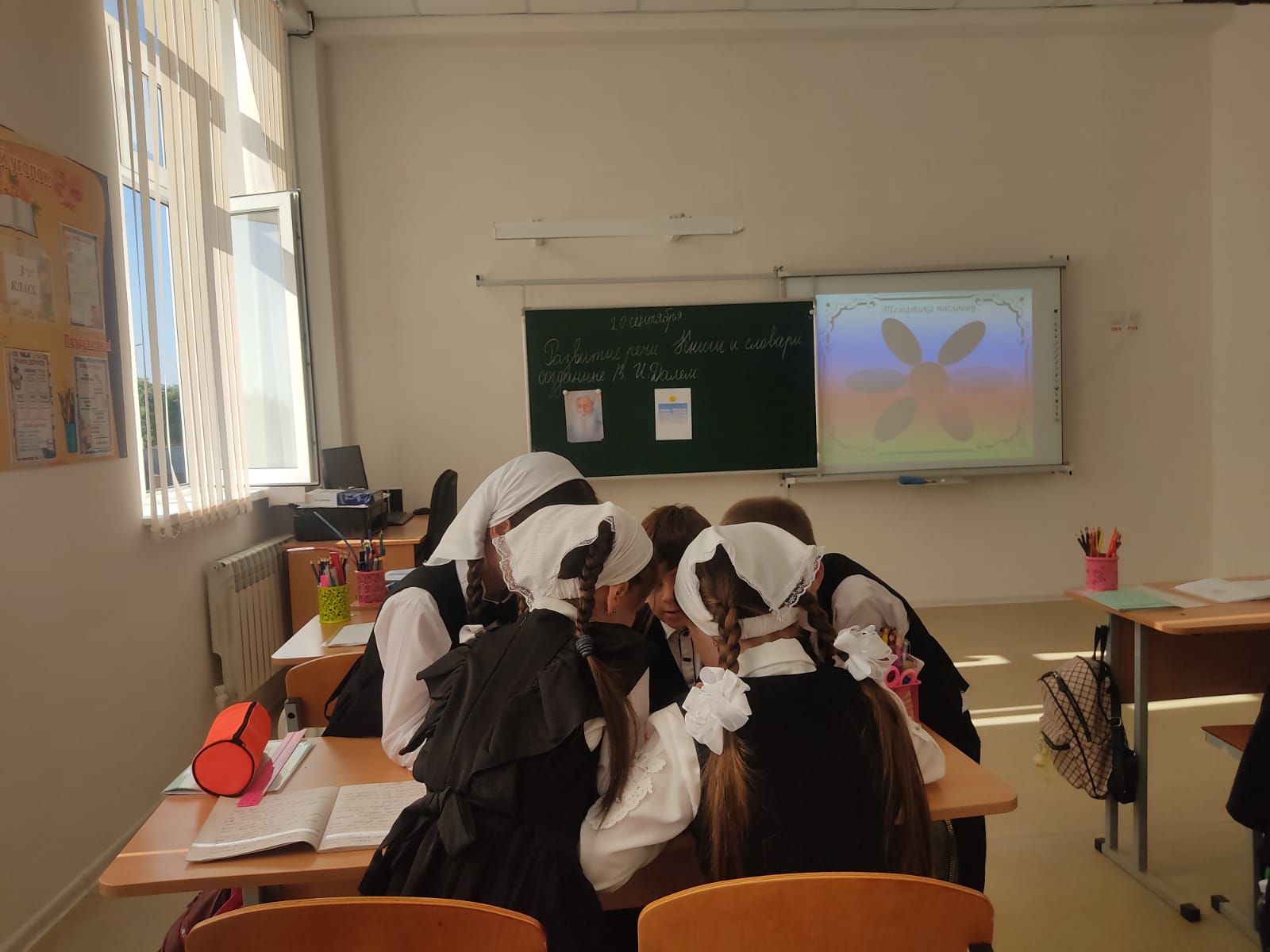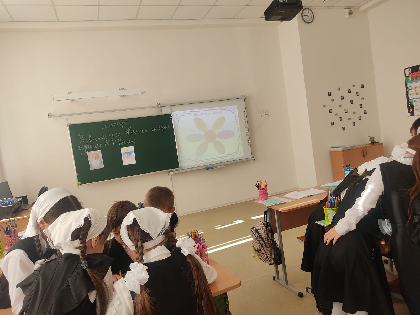 В ходе занятия классный руководитель рассказала учащимся что словарь Даля — первый и до сих пор единственный словарь русского языка, охватывающий как литературный язык, так и различные диалекты. Из 200 тыс. слов, включенных в словарь, более половины составляет литературная лексика, а более 80 тыс. слов, в основном диалектных, были записаны Далем в различных районах России. Стремясь обогатить литературный язык словами «живого», народного языка, Владимир Иванович не делал различий между литературной и диалектной лексикой. В качестве иллюстративного материала она показала ребятам словари и книги, созданные В.И.Далем.