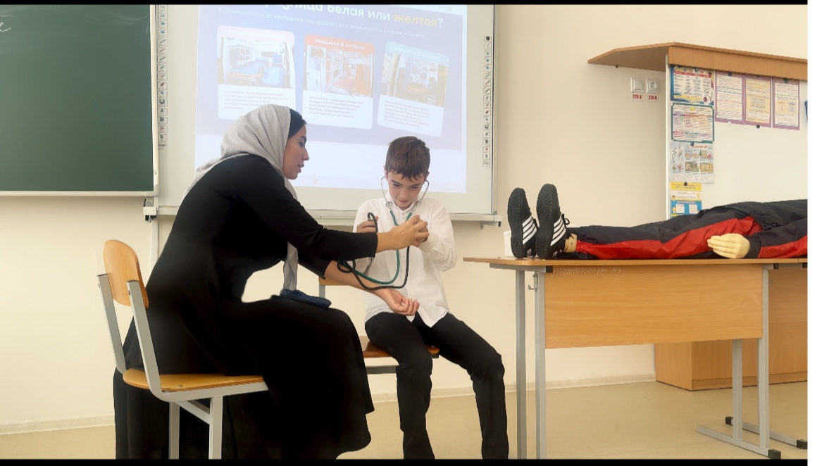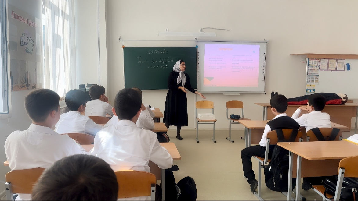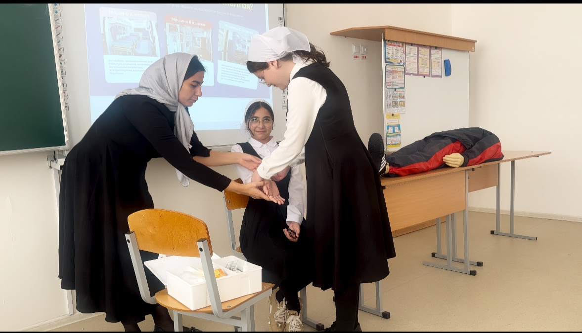 В рамках Всероссийской акции от РДДМ «Движение Первых», посвящённой оказанию первой медицинской помощи в различных ситуациях, в МБОУ «Гелдаганская СШ им. Первого Президента ЧР, Героя России А.А. Кадыр