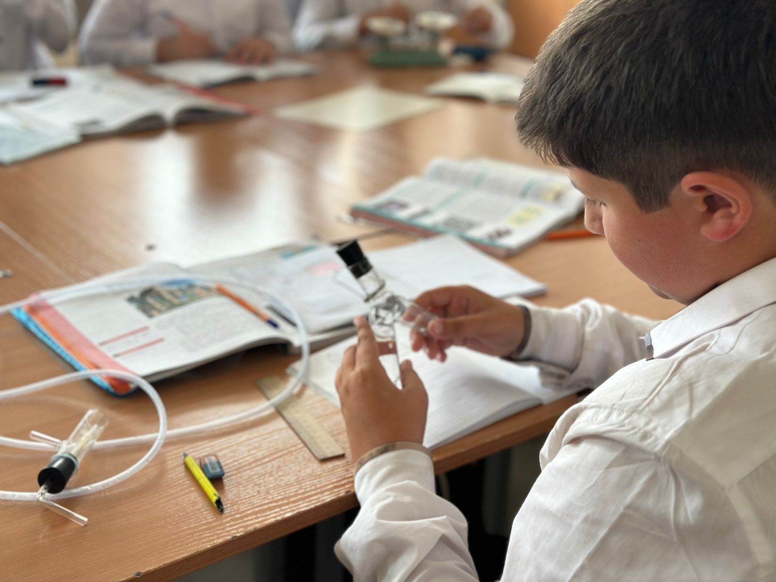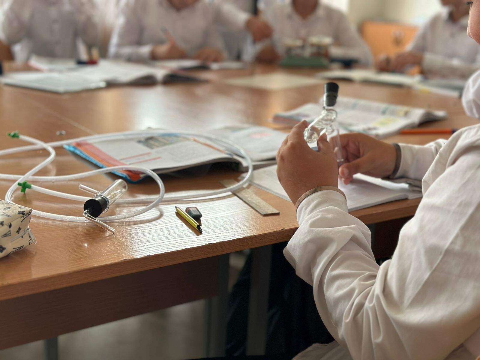 «Проведение данного внеурочного занятия с лабораторной работой позволило раскрыть творческий потенциал учащихся, способствовало развитию учеников и сплочению всего коллектива. Мне удалось мобилизировать внимание учеников, создать рабочую обстановку.» - отметила учитель химии Абдулхаликова Седа Абдурахимовна.