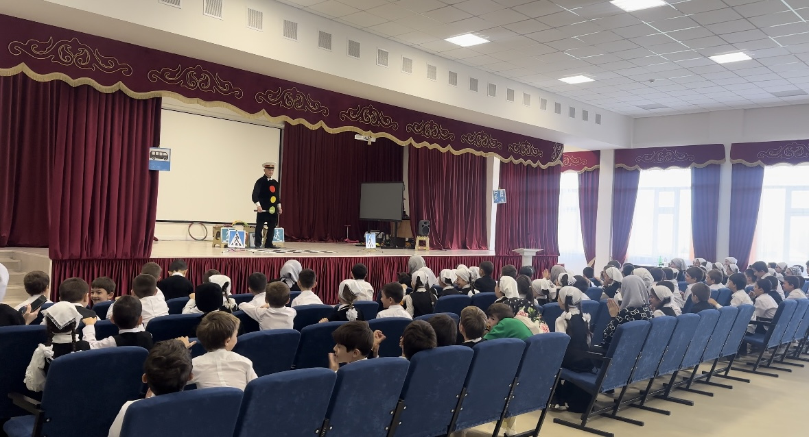 В МБОУ «Гелдаганская СШ им. А.А. Кадырова» прошло познавательно-развлекательное мероприятие с обучающимися начальной школы «Отличники дорожного движения».