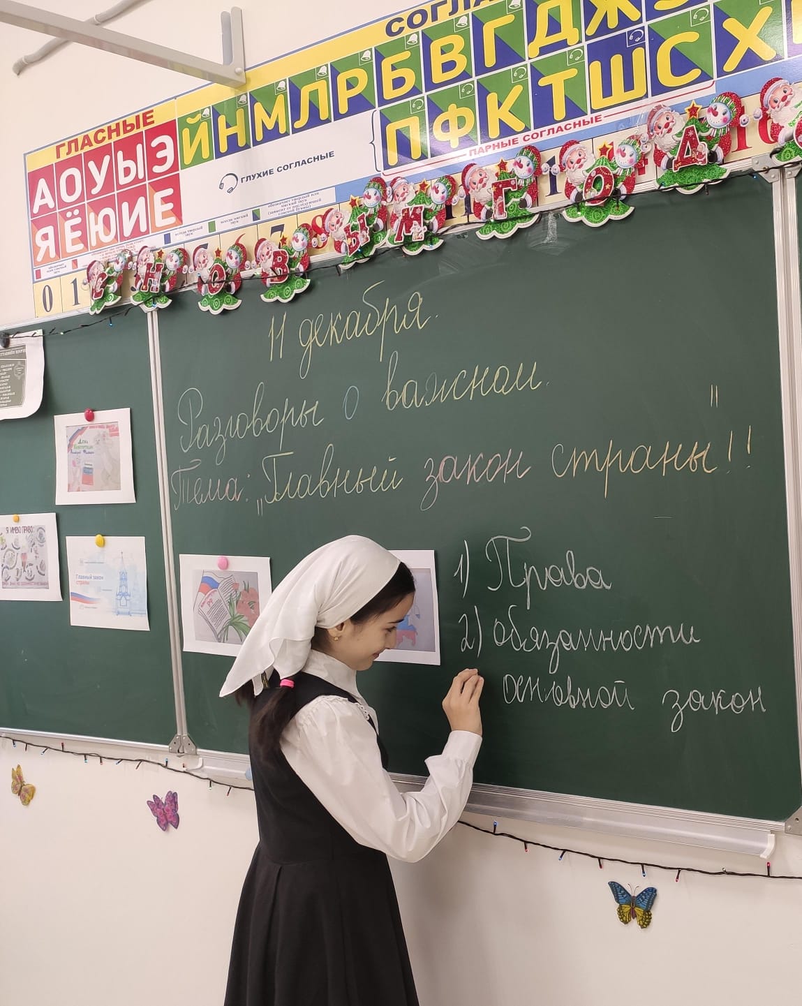 В рамках реализации национального проекта «Образование» федерального проекта «Успех каждого ребенка» и в рамках цикла внеурочных занятий «Разговоры о важном», в МБОУ «Гелдаганская СШ им. Первого Президента ЧР, Героя России А.А. Кадырова» состоялись занятия на тему" «Главный закон страны ".