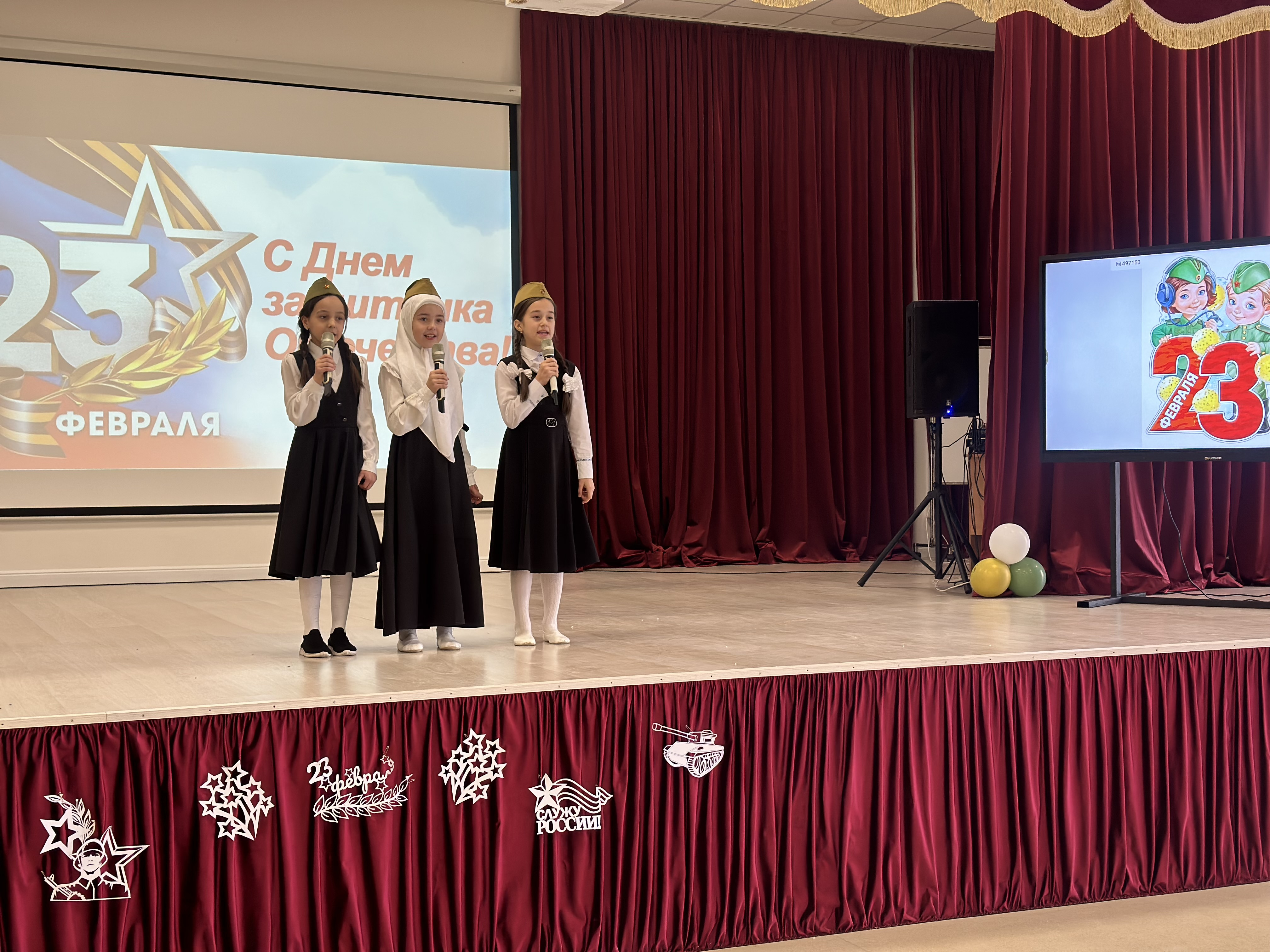 День защитника Отечества отмечается в России 23 февраля. Памятная дата установлена 4 ноября 2014 года после принятия поправок в Федеральный закон от 13.03.1995 № 32 «О днях воинской славы и памятных датах России».На мероприятие были приглашены родные и близкие проходивших военную службу, военнослужащих – участников специальной военной операции. В ходе мероприятия учащиеся школы выступили с поздравительными выступлениями с песнями, стихами и танцами, посвященными защитникам Отечества. Также, был показ видеороликов о военных победах и героических подвигах защитников Отечества. Благодарственные слова прозвучали ветеранам войны и труда, сотрудникам.