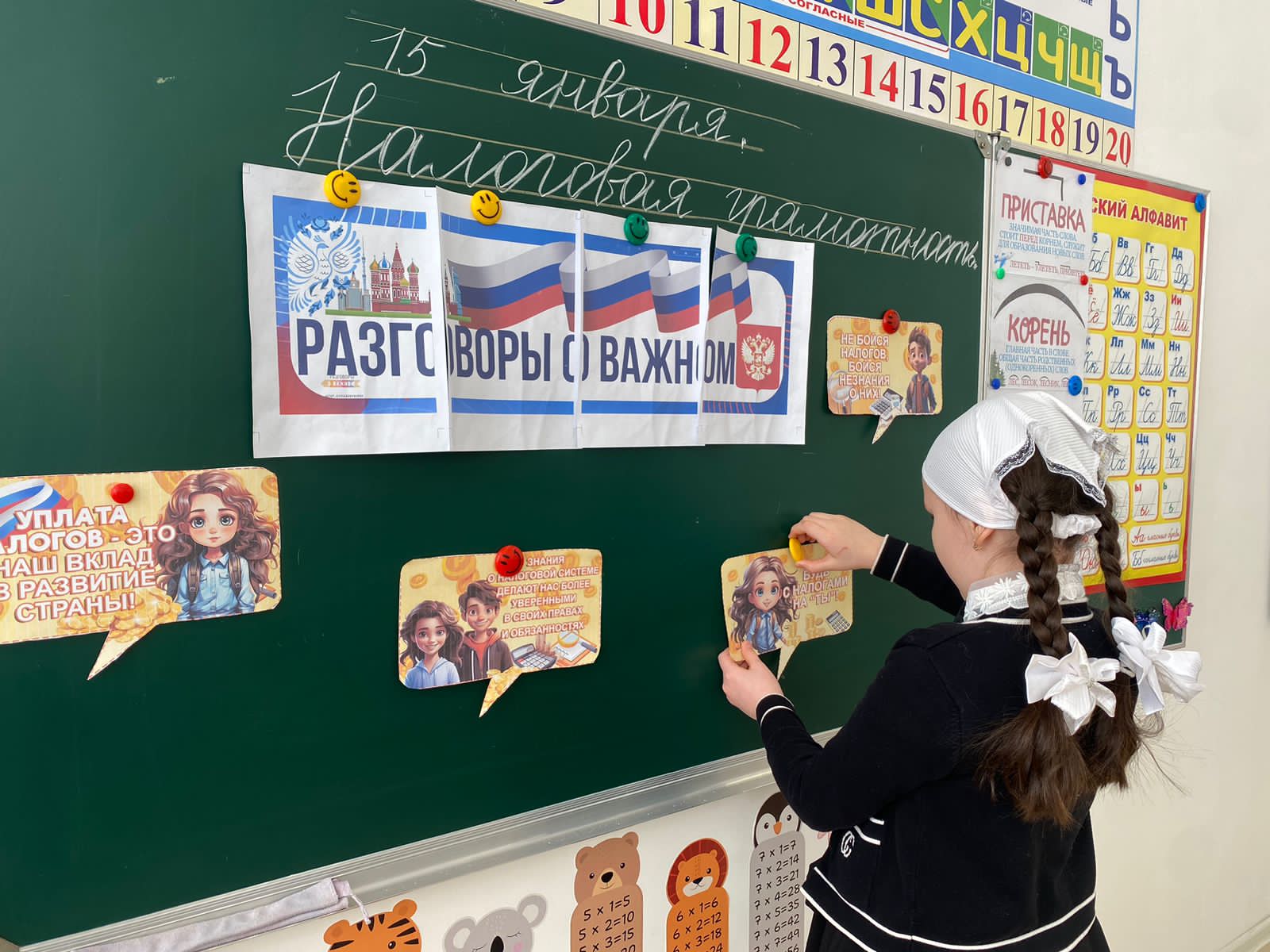 В рамках реализации национального проекта «Образование» федерального проекта «Успех каждого ребенка» и в рамках цикла внеурочных занятий «Разговоры о важном», в МБОУ «Гелдаганская СШ им. Первого Президента ЧР, Героя России А.А. Кадырова» состоялись занятия на тему «Налоговая грамотность». Цель занятия: формирование представления о влиянии налогов на качество жизни каждого гражданина государства; формирование ценностного отношения к конституционной обязанности гражданина – уплате налогов.
