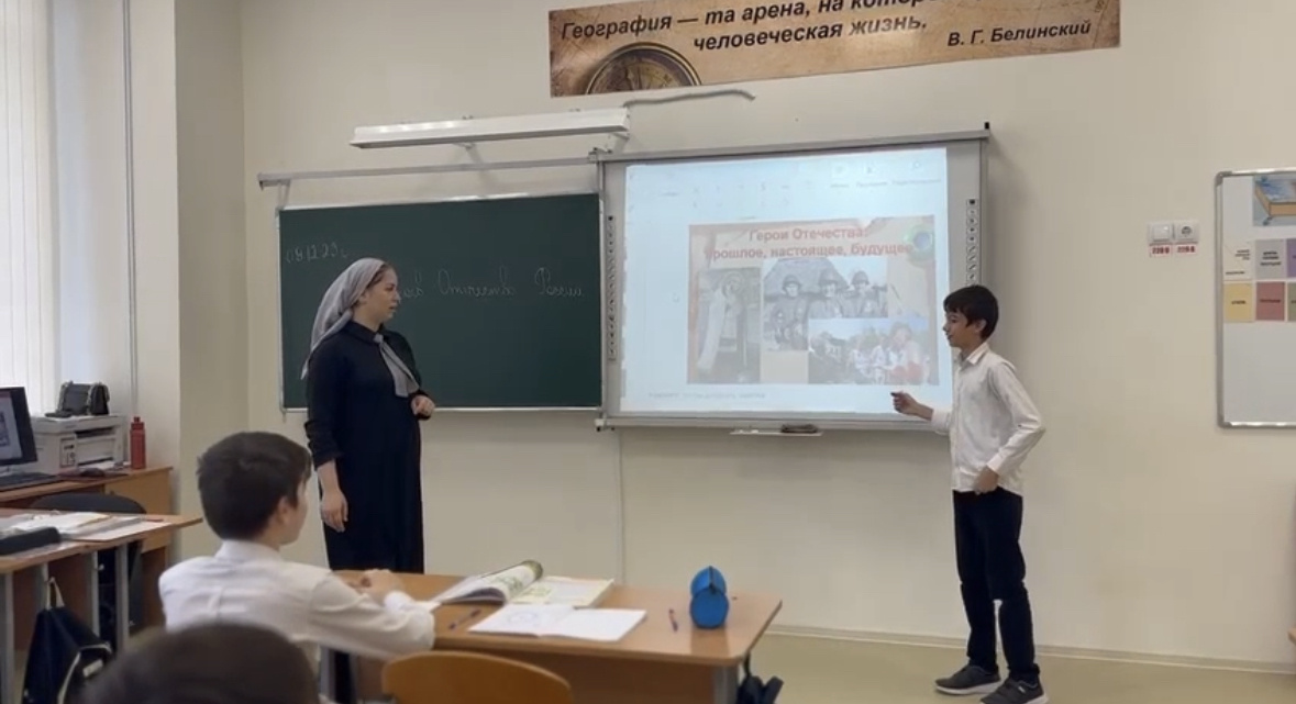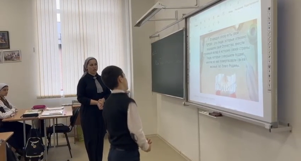 Заместитель директора по воспитательной работе Берсунукаева Макка Хусбаудыевна отметила «Сегодня День Героев Отечества — дань высочайшего государственного и общественного уважения к тем, кто удостоен самых почетных государственных наград — званий Героев Советского Союза, Российской Федерации, ордена Святого Георгия и ордена Славы.»