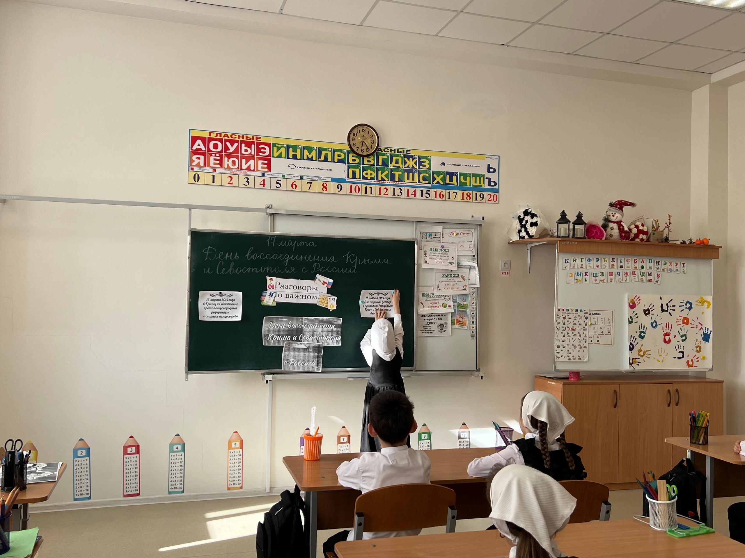 Во время классного часа ребята узнали о всенародном референдуме жителей Крыма в 2014 году, а также научили ребят отличать достоверную информацию от фейков. 18 марта, отмечается День воссоединения Крыма с Россией. Крым и Севастополь вновь стали российскими регионами после проведённого 16 марта 2014 года референдума, на котором большинство жителей высказались за вхождение в состав России. А 18 марта в Кремле подписали соответствующий договор. Эту дату отмечает вся страна.