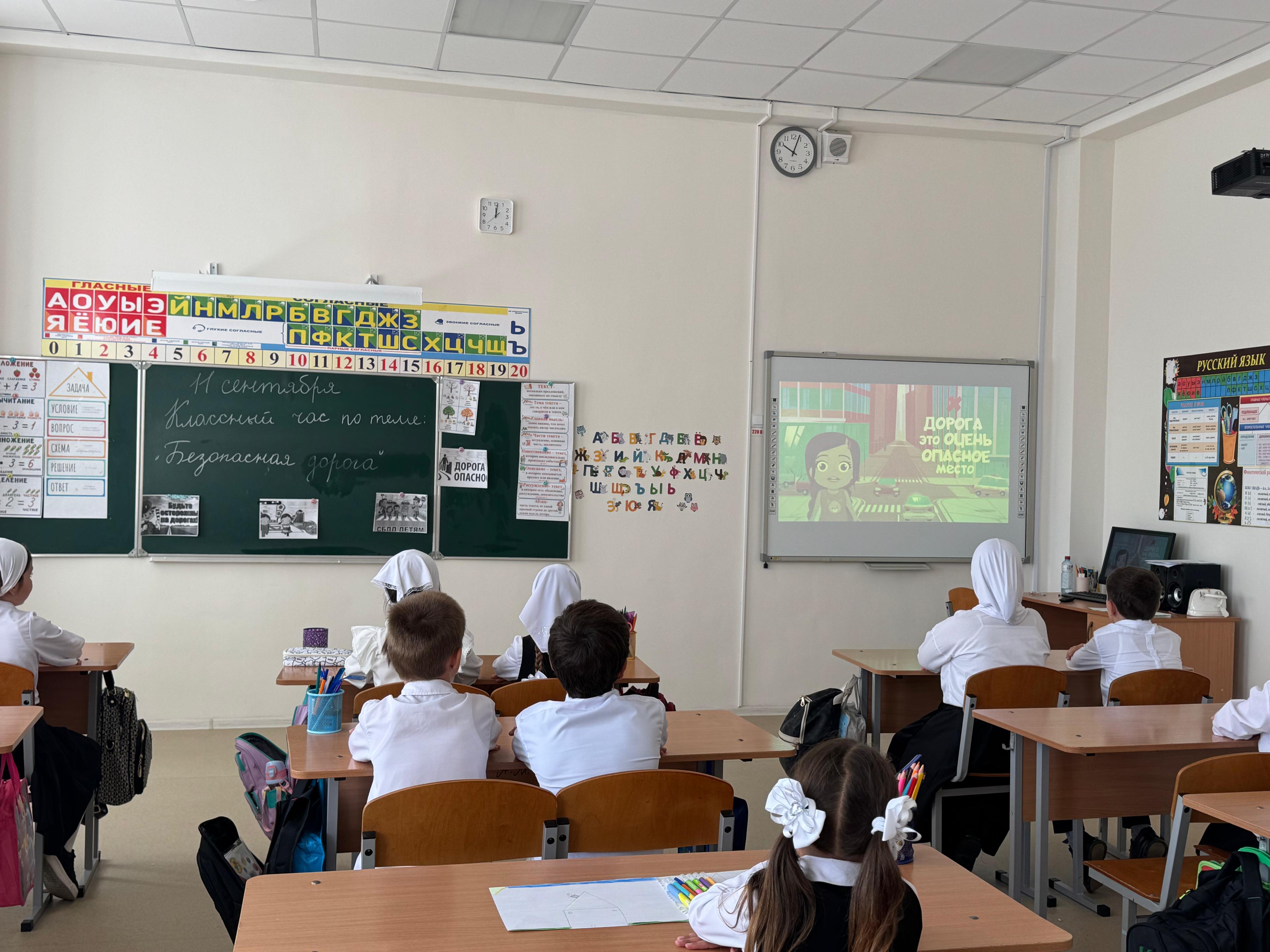 В МБОУ «Гелдаганская СШ им. А. А. Кадырова» в 3 классе состоялся классный час на тему «Безопасная дорога»