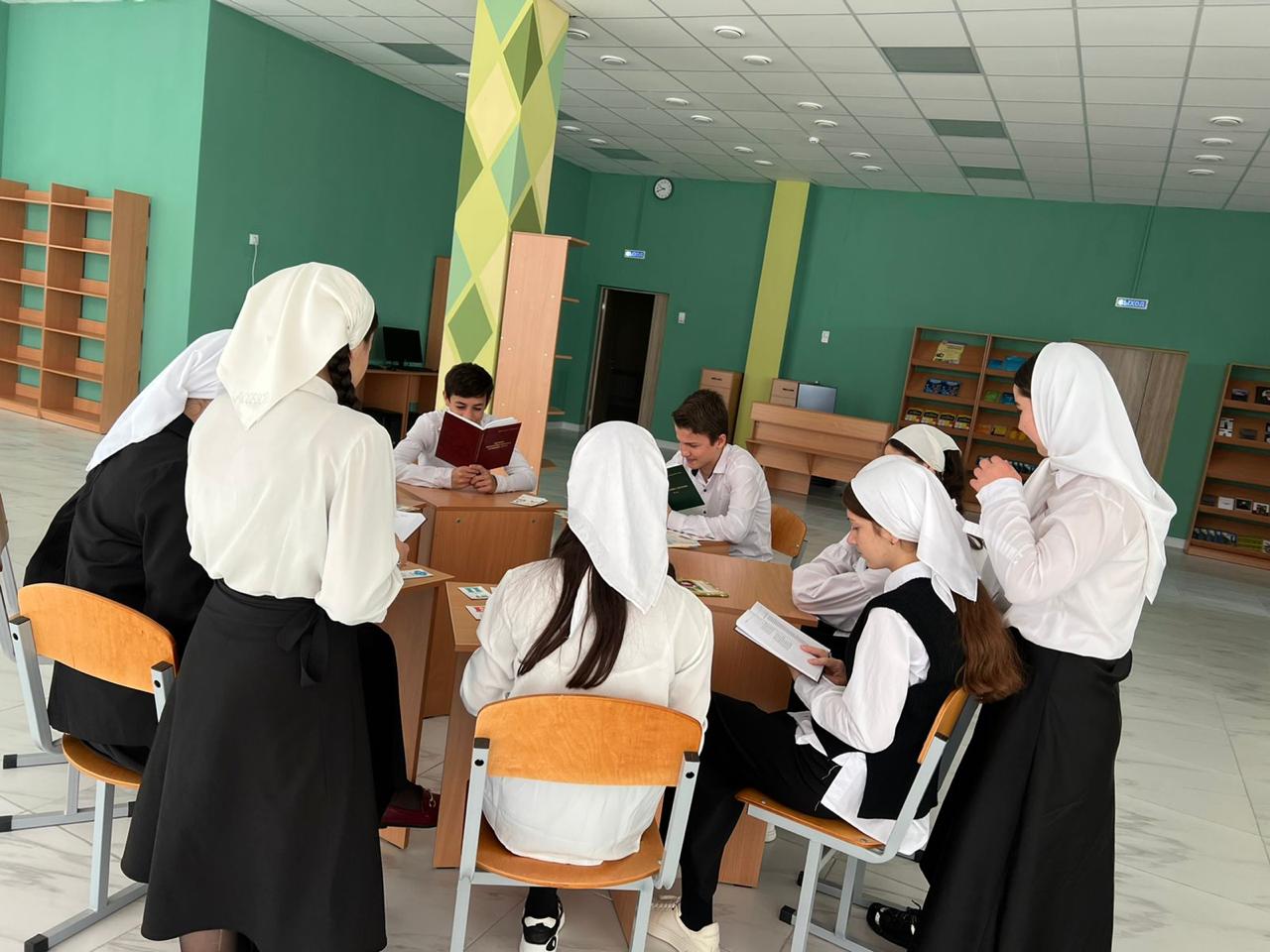 В МБОУ «Гелдаганская СШ им. А. А. Кадырова» состоялось увлекательное мероприятие — знакомство новых учащихся со школьной библиотекой
