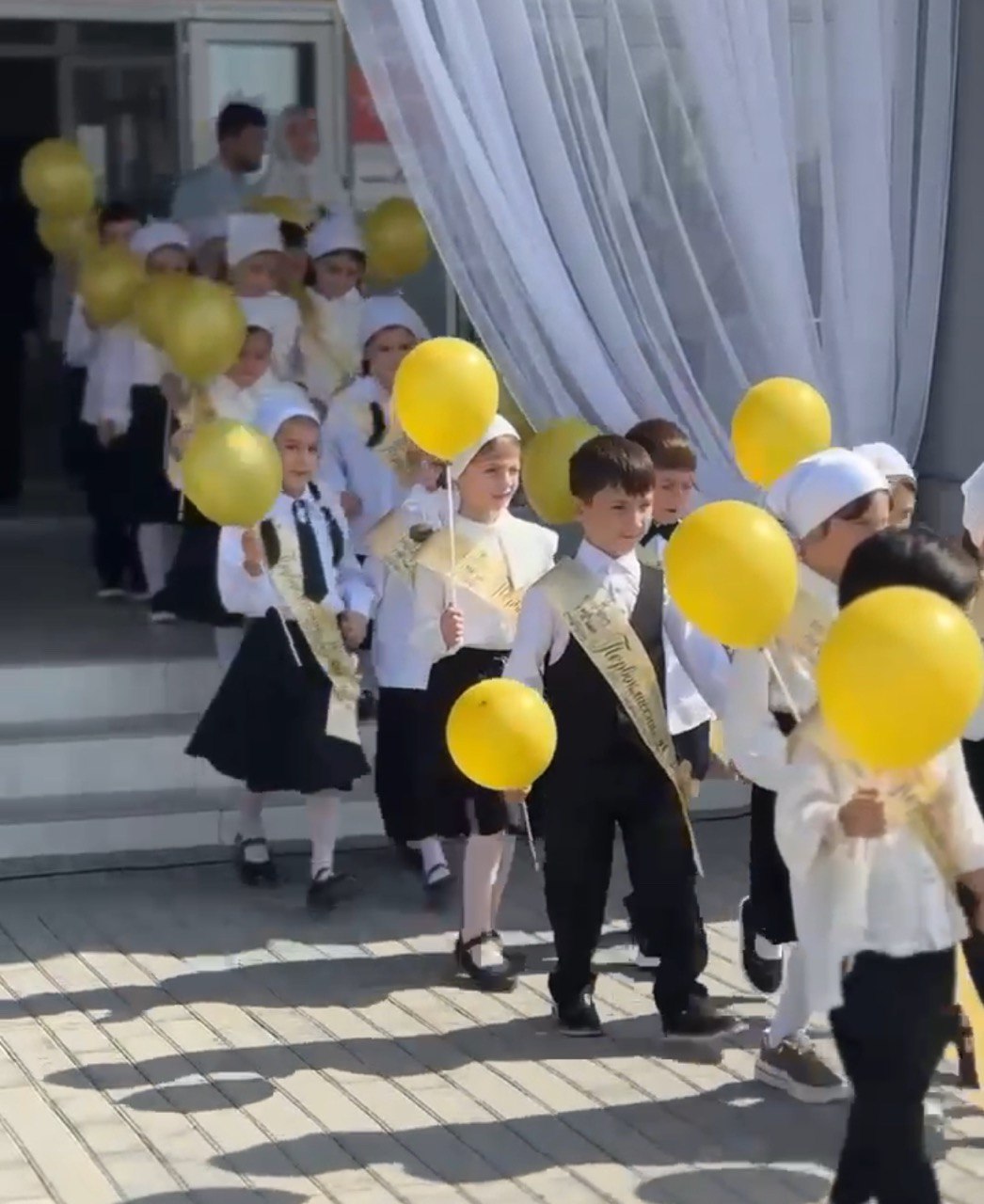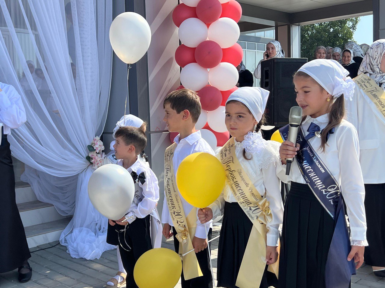 Площадка перед школой была празднично украшена: воздушные шары, флаги и композиции из цветов создали атмосферу радости и ожидания нового учебного года. Торжественное мероприятие началось в 10:00 с исполнения Государственного гимна Российской Федерации и Чеченской Республики. С приветственными словами к собравшимся обратились директор школы и почётные гости. В своих выступлениях они подчеркнули важность школьного образования, пожелали учащимся настойчивости и успехов, а педагогам — вдохновения и профессиональных побед. Особое внимание традиционно было уделено первоклассникам, которые впервые переступили порог школы. Для них прозвучали слова поддержки и напутствия. Старшеклассники подготовили для малышей символические подарки и помогли им почувствовать себя частью большой школьной семьи.